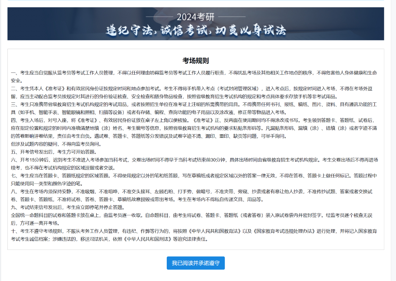 进入研招网报平台首页后,你将看到初试时间提醒、考场规则等内容,这个页面上的提示要认真阅读!