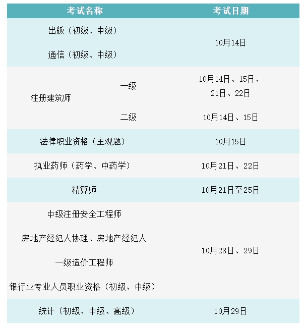 10月专业技术人员职业资格考试