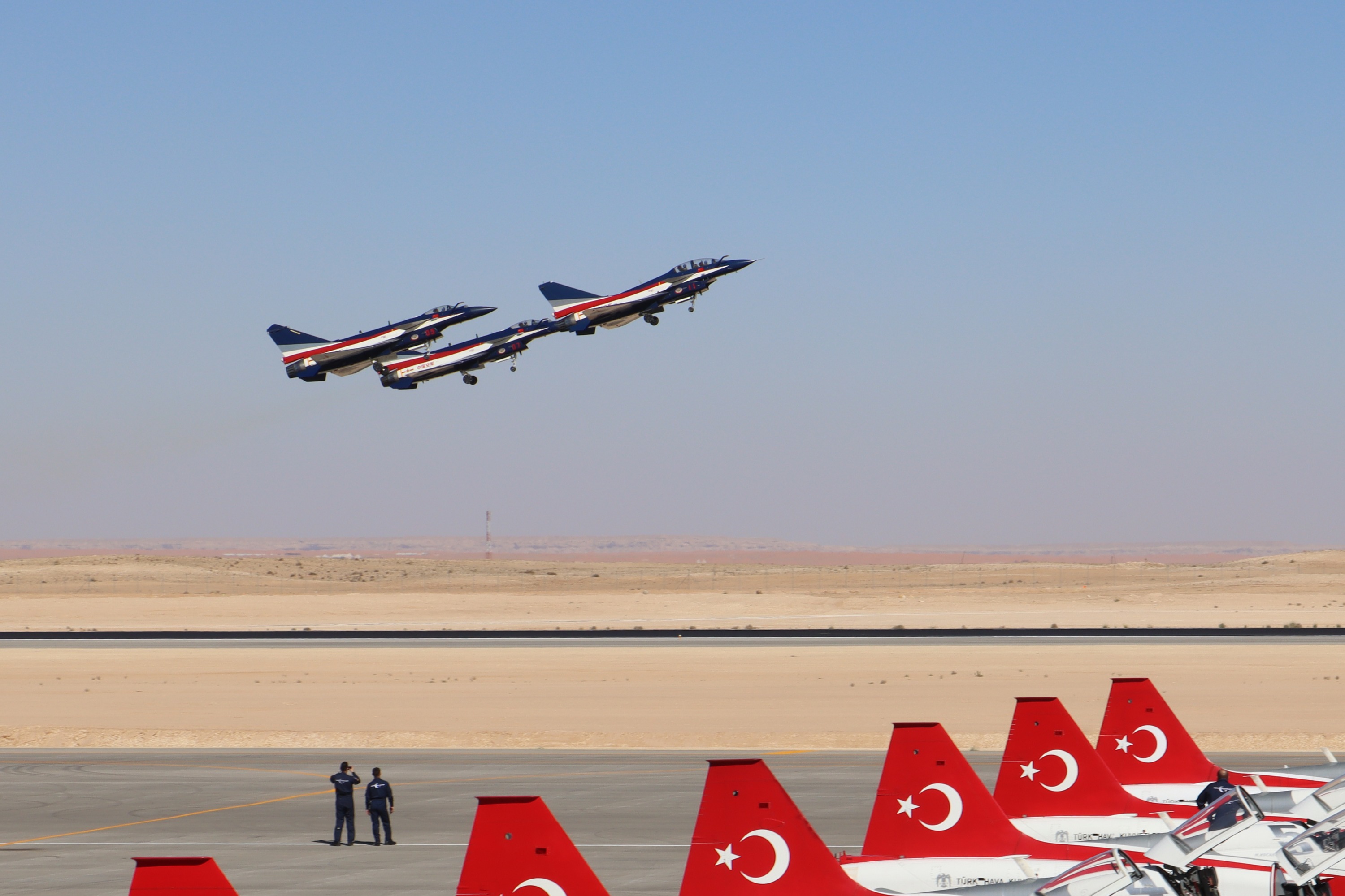 2月1日,空军八一飞行表演队在第二届沙特国际防务展表演机场展开适应性训练,为2月4日至8日的正式飞行表演做准备,这也是空军八一飞行表演队抵达沙特利雅得后的首场飞行。