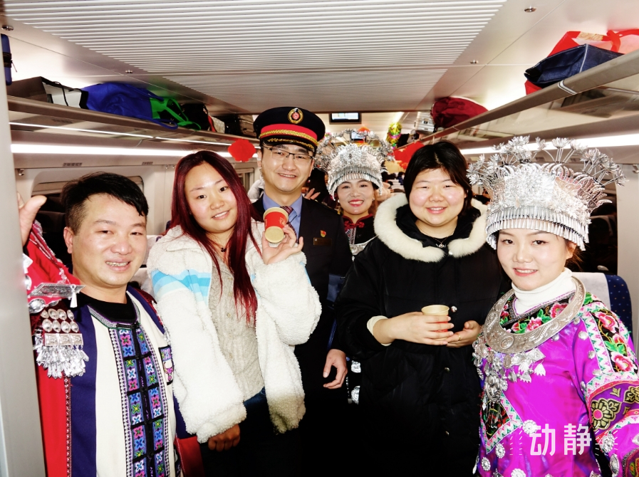 今年春运期间,中国铁路成都局集团贵阳客运段打造“高铁+冬游贵州”新举措,将地方美食美景、传统民俗文化与服务有机结合,列车工作人员担当“小导游”,义务向乘车旅客推介贵州“冬季游”最新优惠政策、贵州旅游攻略等,还与部分文旅部门联动,将原生态的民族表演邀请上车进行展示,为贵州旅游“吸流”作出积极贡献。