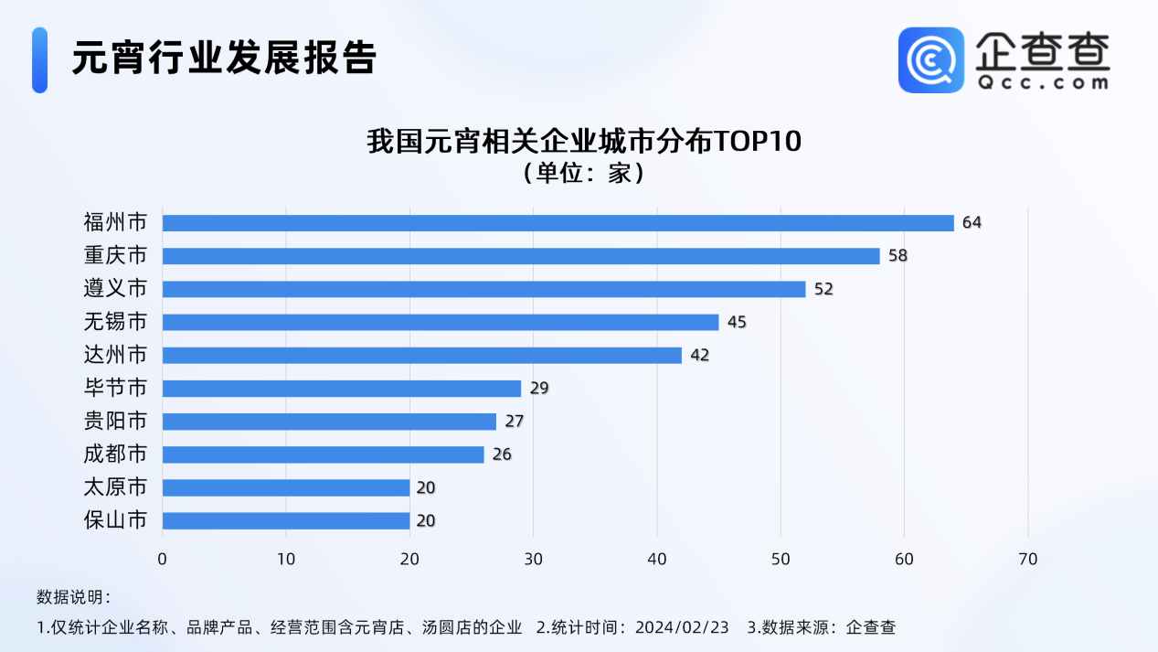 值得一提的是,我国现存元宵相关企业城市分布top10中,南方城市比例偏高。其中,贵州省遵义市、毕节市、贵阳市现存元宵相关企业跻身全国前10。