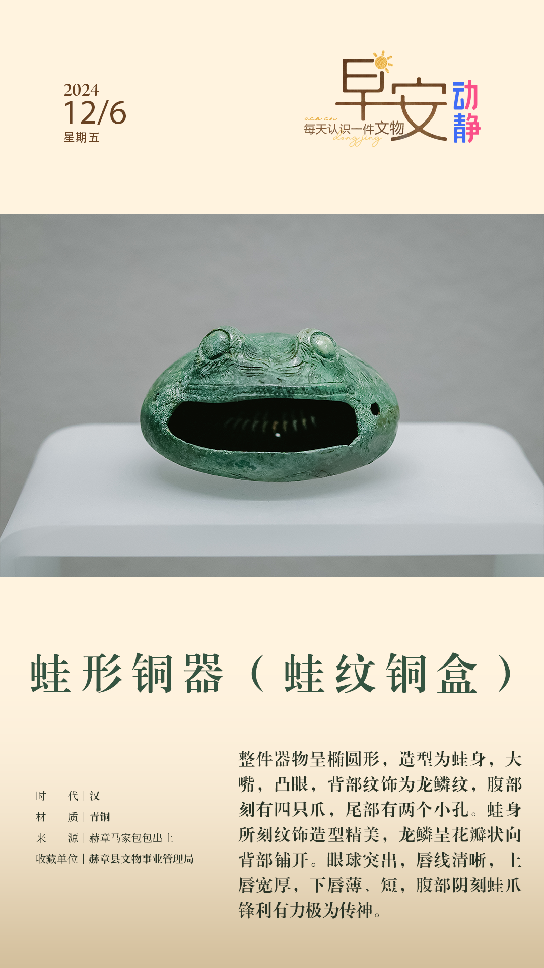 蛙形铜器是一种以蛙的形象为造型或装饰元素的铜质器物,在不同地区和时期有着各自的特点与文化内涵。赫章县所在的区域曾是夜郎文化的重要分布范围之一。夜郎文化以其独特的青铜文化、神秘的民俗风情等著称。