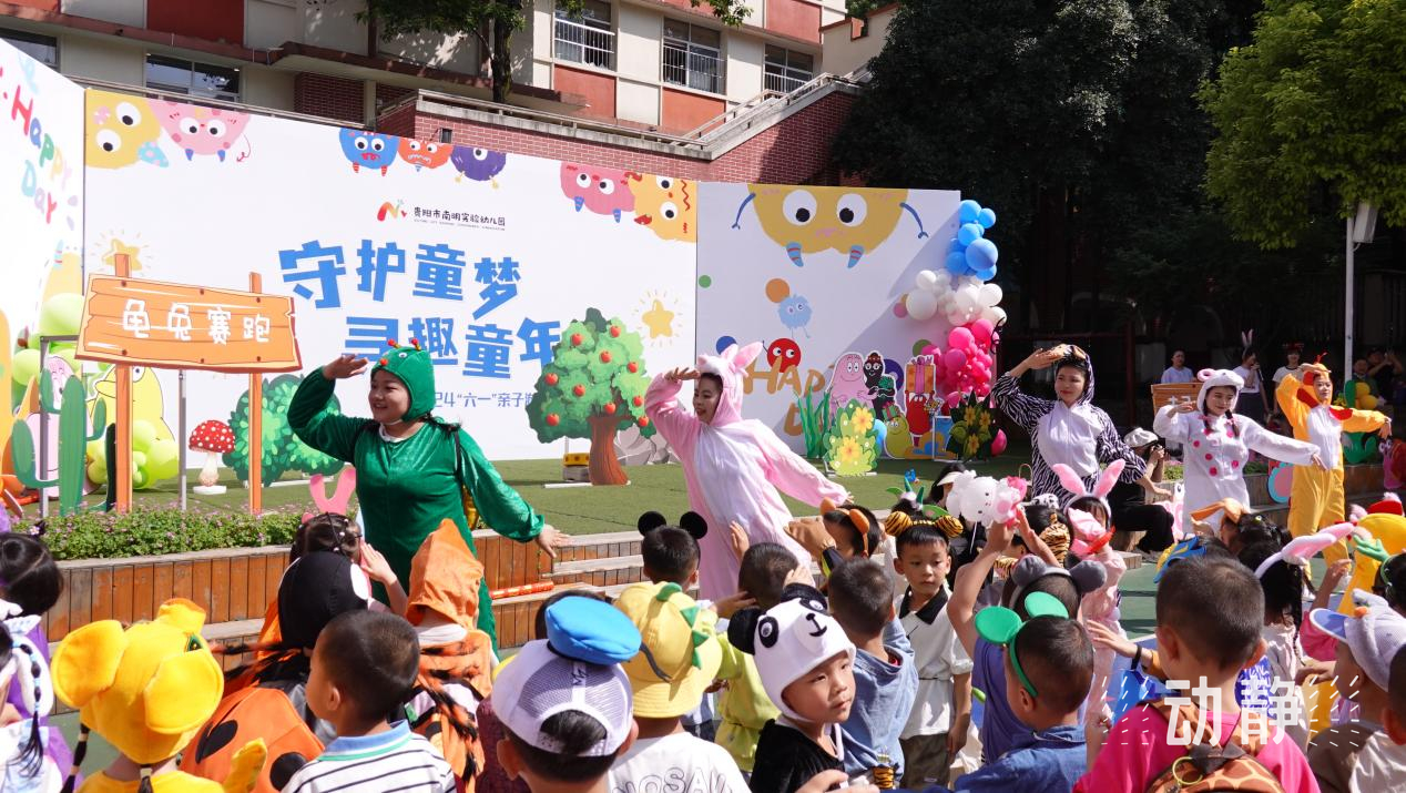 今天(5月31日),贵阳市南明实验幼儿园洋溢着欢快的节日氛围,幼儿园小班的小朋友与家长们身着各式各样动物服装入园参加主题为“守护童梦·寻趣童年”的“六一”亲子游园活动,幼儿园变身为充满奇幻色彩的森林王国。