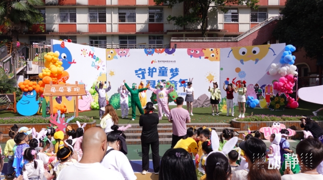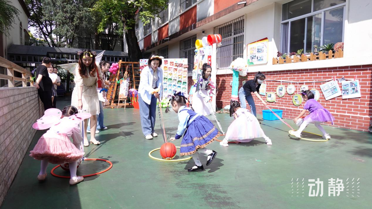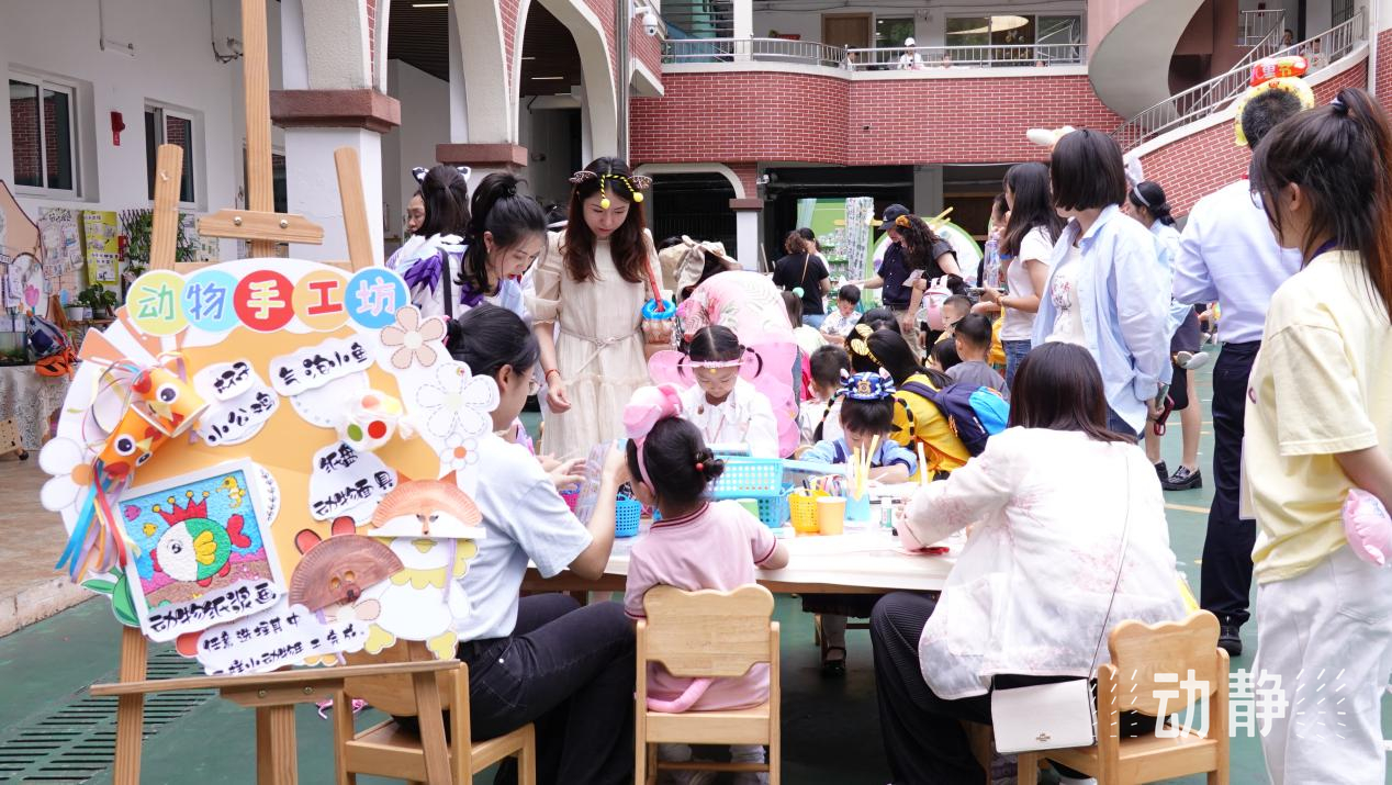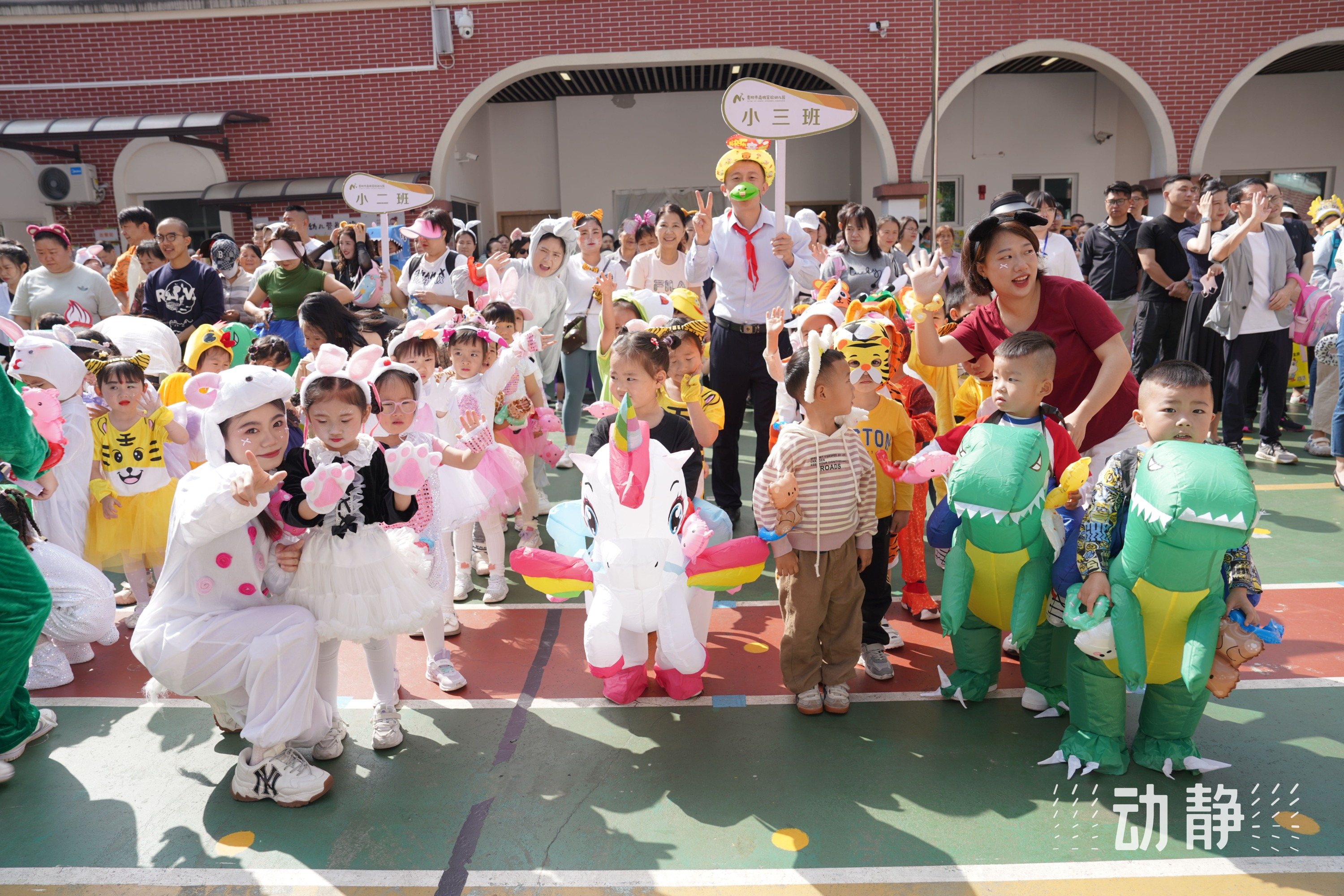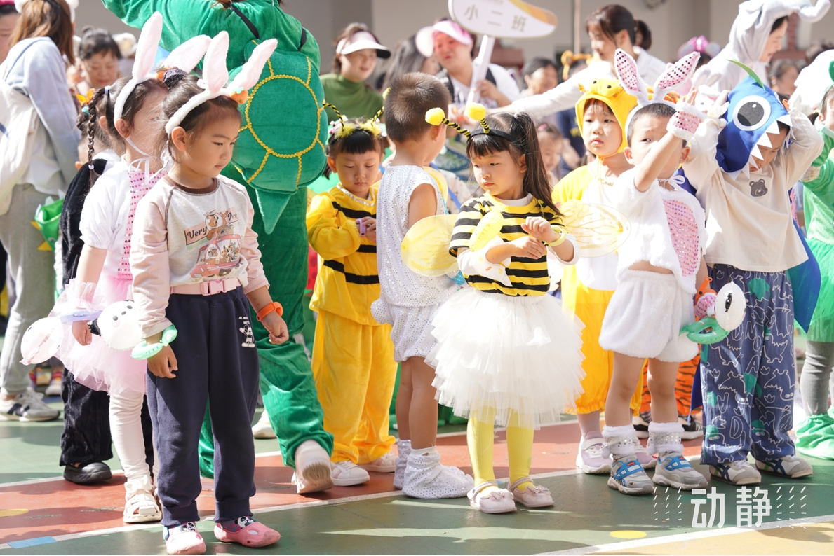 今天(5月31日),贵阳市南明实验幼儿园洋溢着欢快的节日氛围,幼儿园小班的小朋友与家长们身着各式各样动物服装入园参加主题为“守护童梦·寻趣童年”的“六一”亲子游园活动,幼儿园变身为充满奇幻色彩的森林王国。