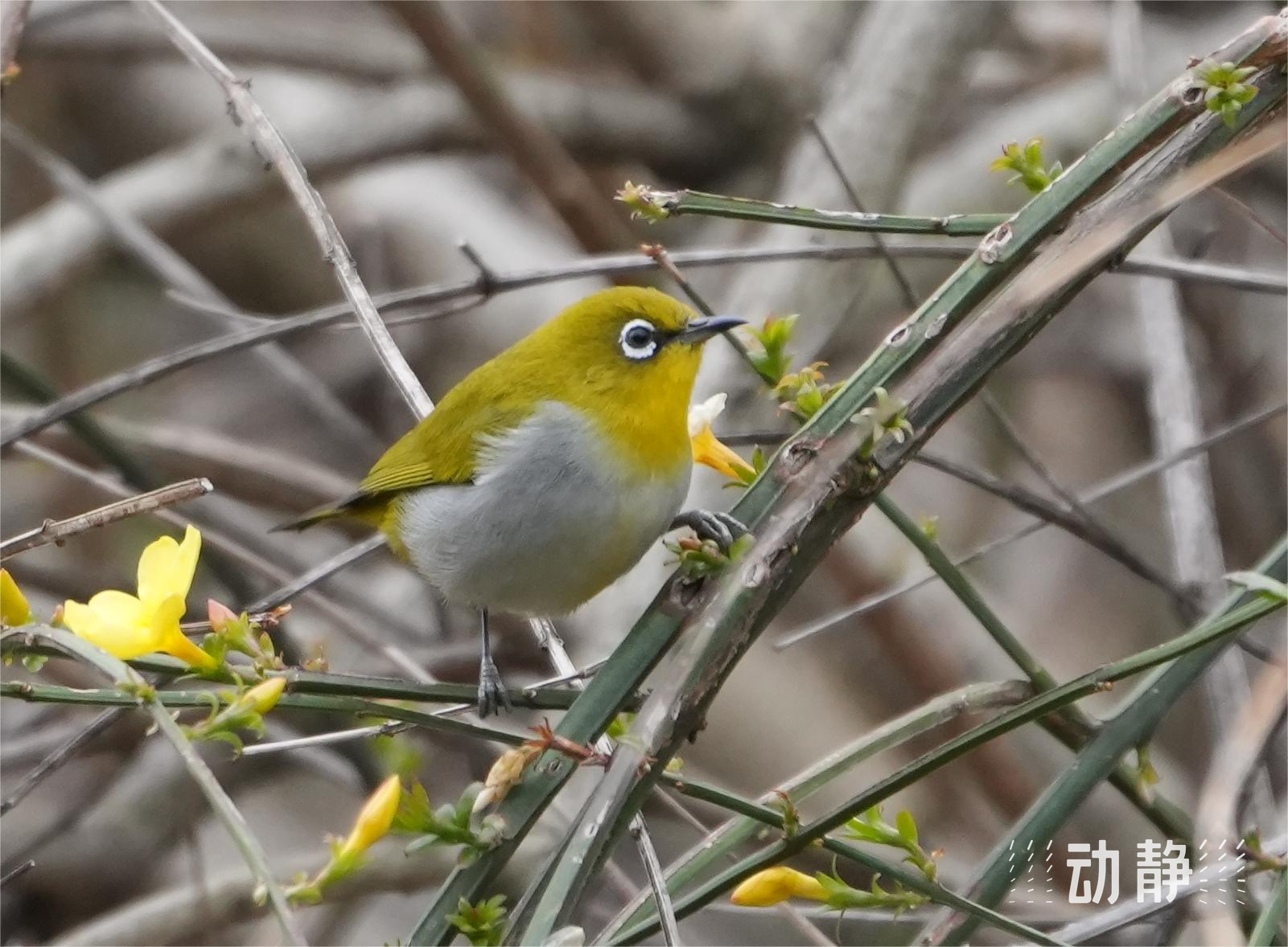 这段时间,无论是在森林里还是城市中,经常可以看到一种体形细小、颜色好看的小鸟,在灌木丛中穿梭跳跃,相互追逐着,动作很快,相机镜头难以捕捉。我有几次在花鸟市场的鸟笼里也看到过,只不过它已经没有了在大自然中的灵气,孤独呆滞地在鸟笼里上窜下跳,这次看得很真切,它就是雀形目绣眼鸟科的暗绿绣眼鸟,鸟贩们叫它“黄豆雀”或“绿豆鸟”。