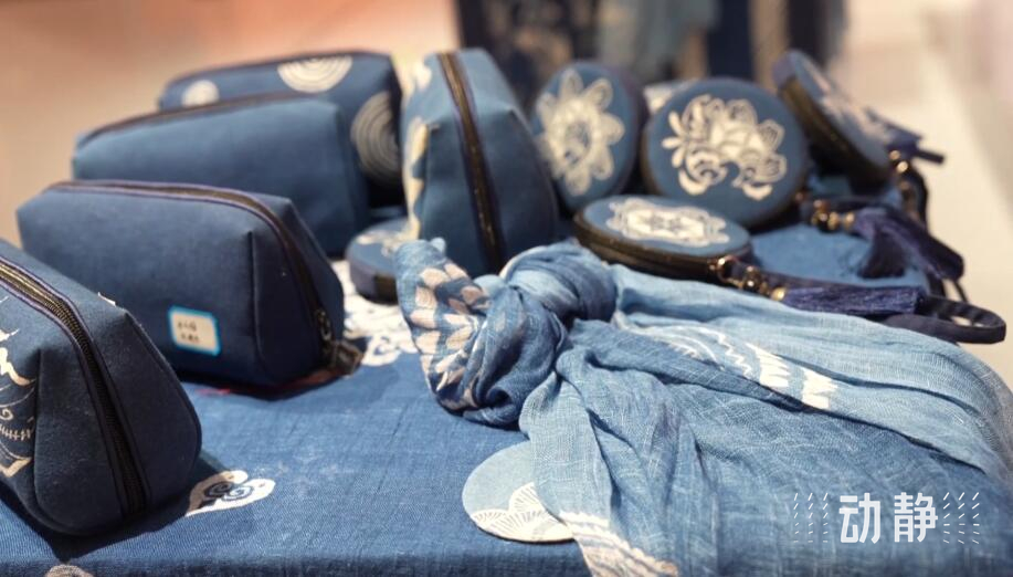 大家在志愿者导览员引导下参观《贵州少数民族传统手工艺助力乡村振兴创新作品巡展》,了解刺绣与蜡染的传统手工艺特点,还现场体验刺绣香囊制作。
