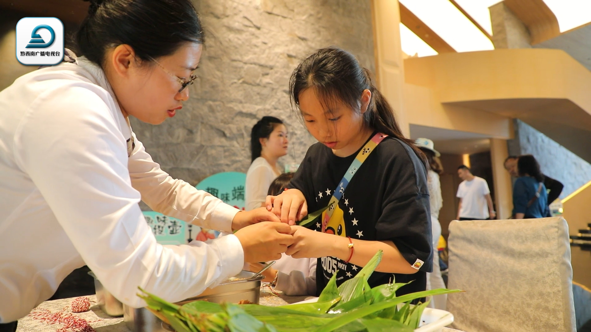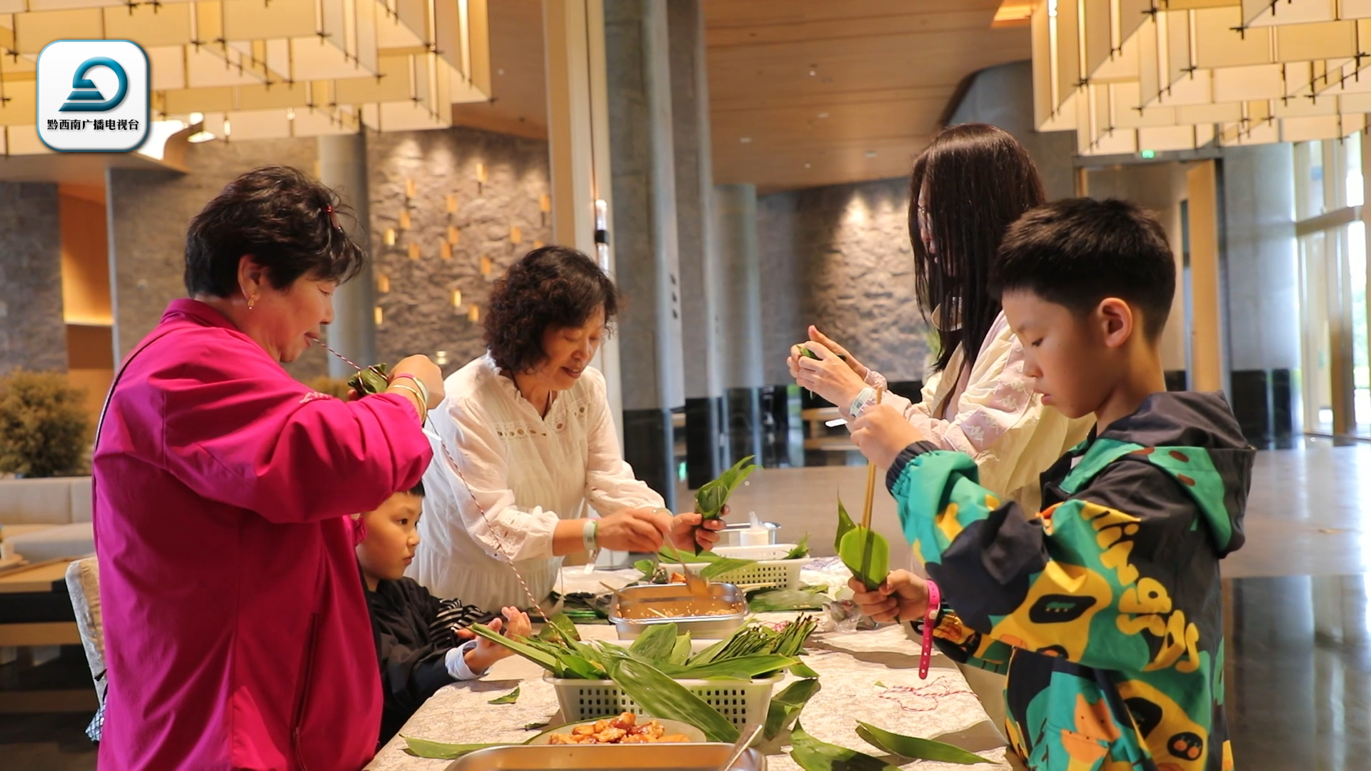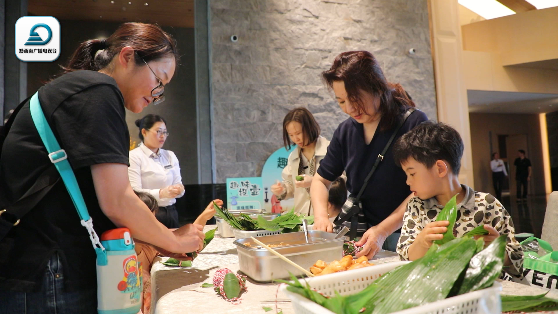 在云屯·沐云温泉度假酒店大厅,不少游客正带着孩子亲手包粽子,了解中国传统美食制作工艺,沉浸式感受中国传统节日的“味道”。