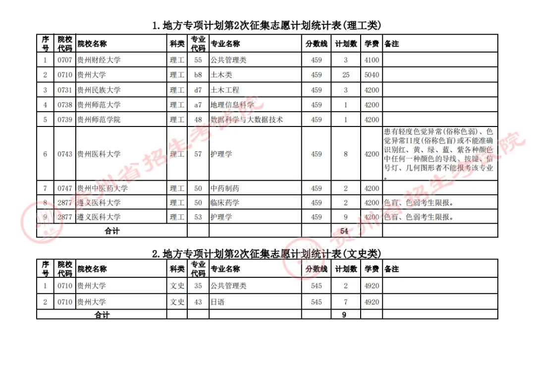 关于贵州省2023年普通高校招生地方专项计划第2次网上征集志愿的说明