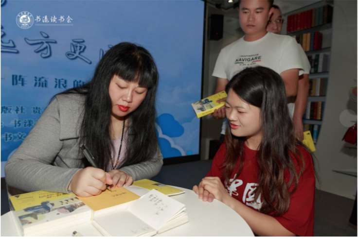 9月24日下午3时,书漾读书会在贵阳市南明区图书馆举办作家孙瑜的新书《等候一阵流浪的风》品读会,孙瑜到场与读者交流。