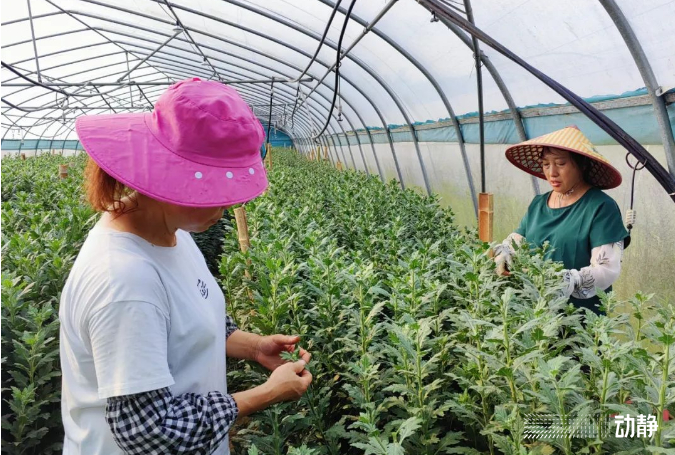如今,菊花产业成为了当地村民致富的香饽饽,“下地上班去”成了村民的口头禅,村民们摇身变成了“上班族”。村民戴燕说:“自基地建设以来,我就一直在这里干活。忙的时候,收入在三千元左右。”