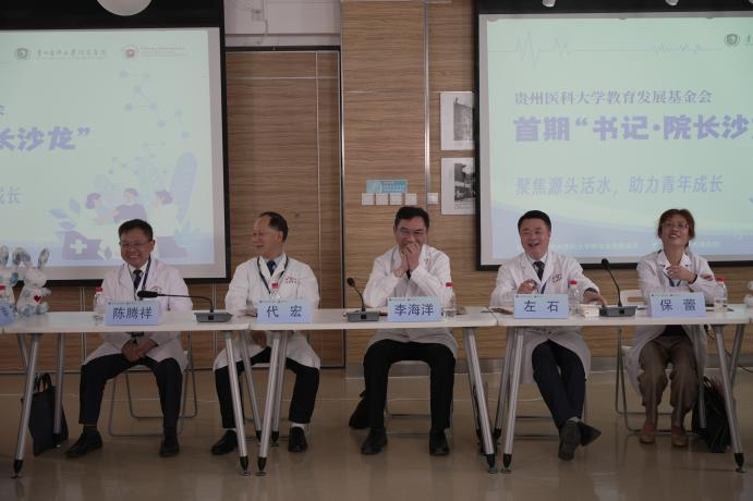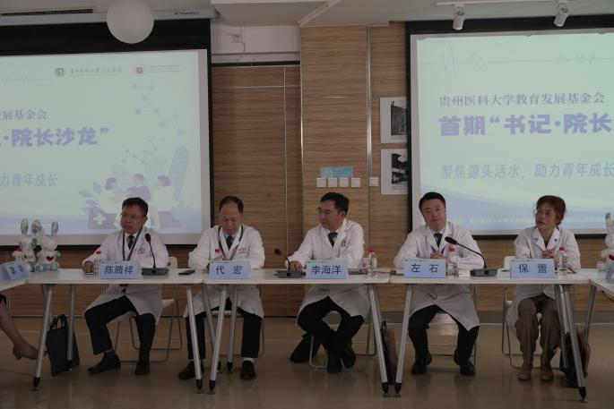 “各位白衣天使们,大家下午好!”在贵州卫视主持人杨璇温和亲切的问候中,由贵州医科大学附属医院和贵州医科大学教育发展基金会联合举办的首期“书记·院长”沙龙拉开序幕。主持人首先介绍了参加本次沙龙的书记、院长。他们分别是贵州医科大学附属医院党委书记李海洋、院长左石、党委副书记代宏、纪委书记保蕾、副院长陈腾祥。参会领导一一颔首致意,殷殷目光望向青年、望向未来。此外,贵医附院各科室带头人及青年医生代表与书记、院长一起展开深度对话,共谋发展、共绘蓝图,为贵医附院未来发展注入新活力。