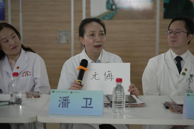 16岁便进入贵医读书的产前诊断中心主任潘卫在白板上写下“无悔”二字。她回顾自己在贵医近41年的人生历程,“毫不犹豫写下无悔”。“看到了青年医生们所写的‘成长’、‘激情’、‘拼搏’、‘关爱’这样的关键词,曾经我都有过同样的感受,但你们以后所取得的成就一定比我高,我相信你们以后也会写下无悔”。神经外科主任杨华则以幽默的语言分享了自己与贵医附院的不解之缘,他还表示当越来越多的青年人加入贵医附院,贵医附院管理改革不断升级时,他“躺不平”,只有坚持不断进步,才能促进自己和贵医附院不断发展。一句“贵医是我们的,也是你们的,最终也是你们的”将气氛引至高潮。