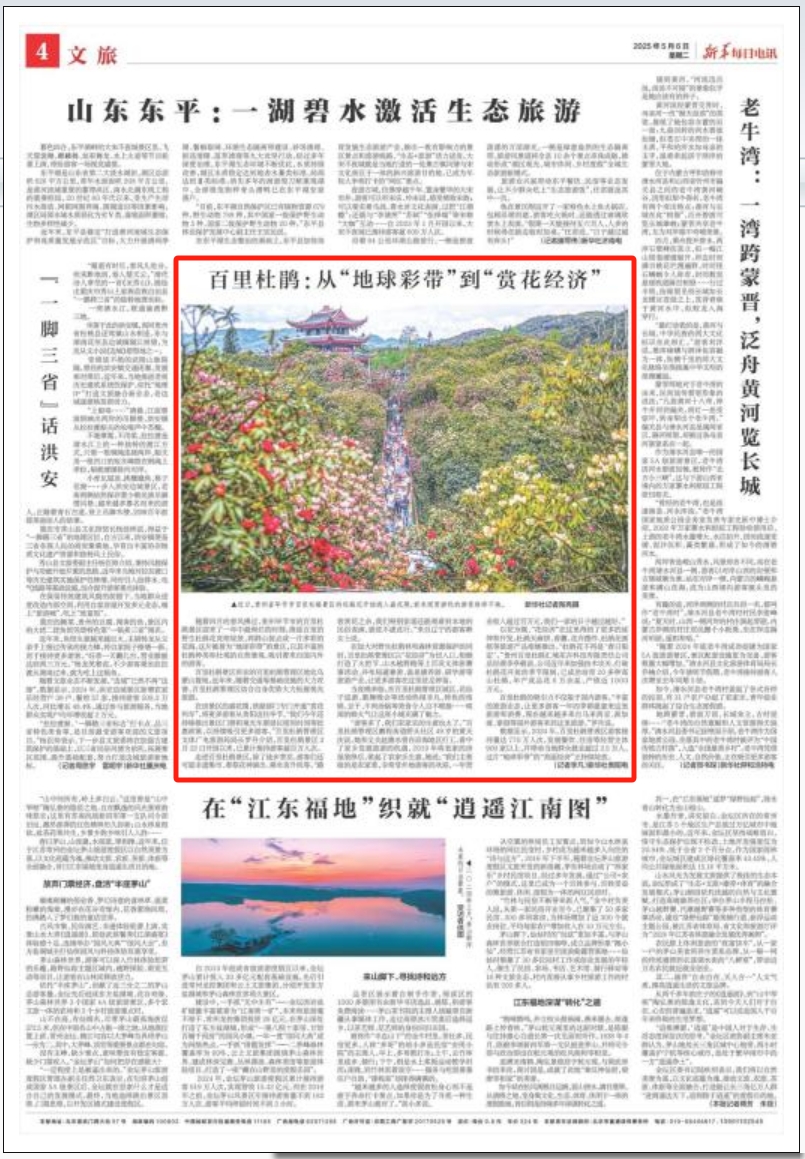 数据显示,2024年,百里杜鹃管理区游客接待量达770万人次,发展餐饮、住宿等经营主体900家以上,并带动当地群众就业超过2.5万人,这片“地球彩带”的“美丽经济”正持续绽放。