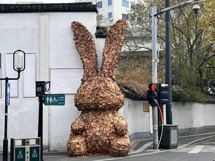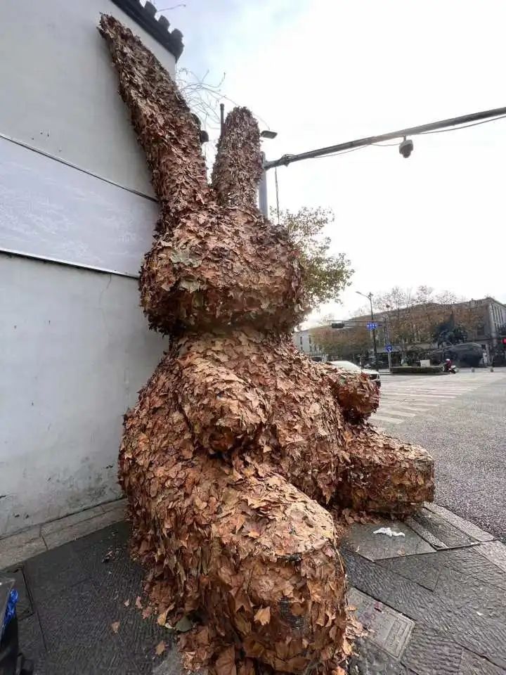 原标题:杭城街头这只4米高的落叶兔火了!市民:希望它给新的一年带来好运