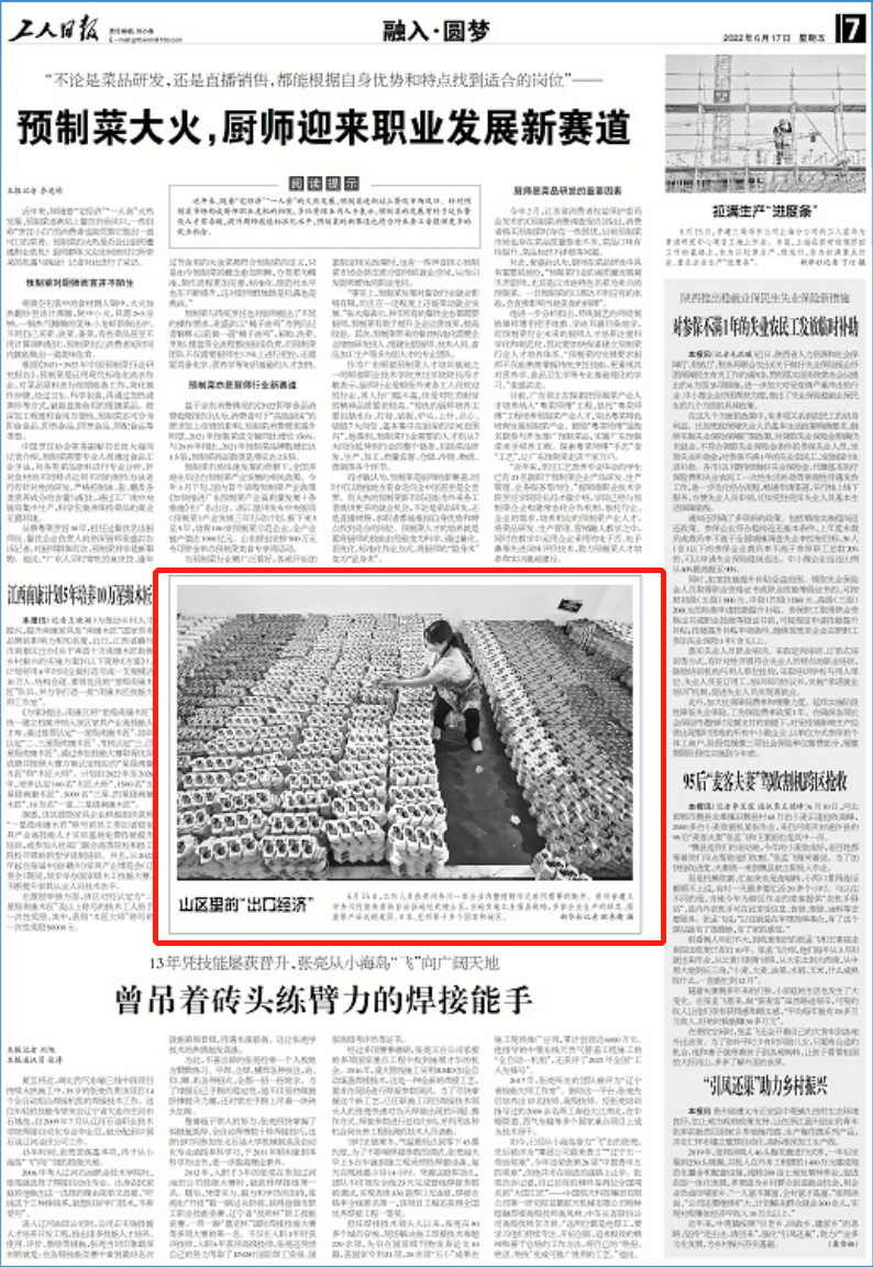 今天(6月17日),《工人日报》刊发新闻《山区里的“出口经济”》。