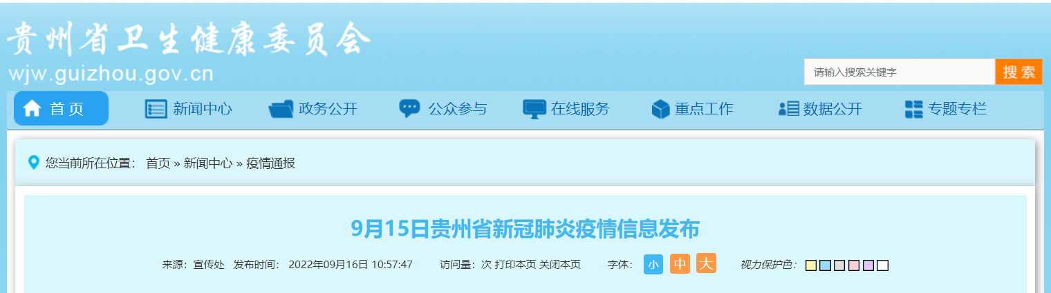 2022年9月15日0—24时:全省新增确诊病例10例(毕节市织金县3例、遵义市播州区1例、贵阳市6例);新增无症状感染者260例(毕节市织金县103例、遵义市播州区4例、贵阳市153例)。