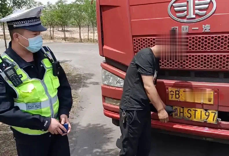 2022年5月13日,宁夏石嘴山。河滨交警大队民警经过4天的缜密摸排,在惠农区新110国道将驾驶套牌牵引车的杨某某查获。