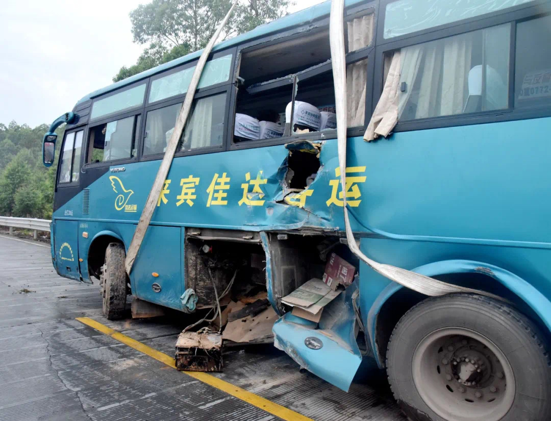 事发时,车上有驾驶人黎某、售票员和两名乘客,共4人。除黎某外,其他三人均未系安全带,两名乘客在事故中被甩离座位后直接抛甩至驾驶室,在来回撞击中不同程度受伤。售票员坐在驾驶室后方,幸运地被驾驶室挡板挡住,无大碍。