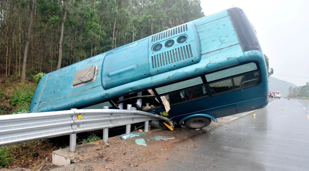2022年5月6日,当日下午15时40分许,黎某驾驶一辆大客车驶往市区,在一处弯道路段黎某实施借道超车,发现对向有车便刹车避让,结果因雨天路滑导致大客车甩尾侧滑。为避免两车相撞,黎某立即向右急打方向想驶回原车道,结果车辆失控驶出路外,倾斜着翻在了护栏上。