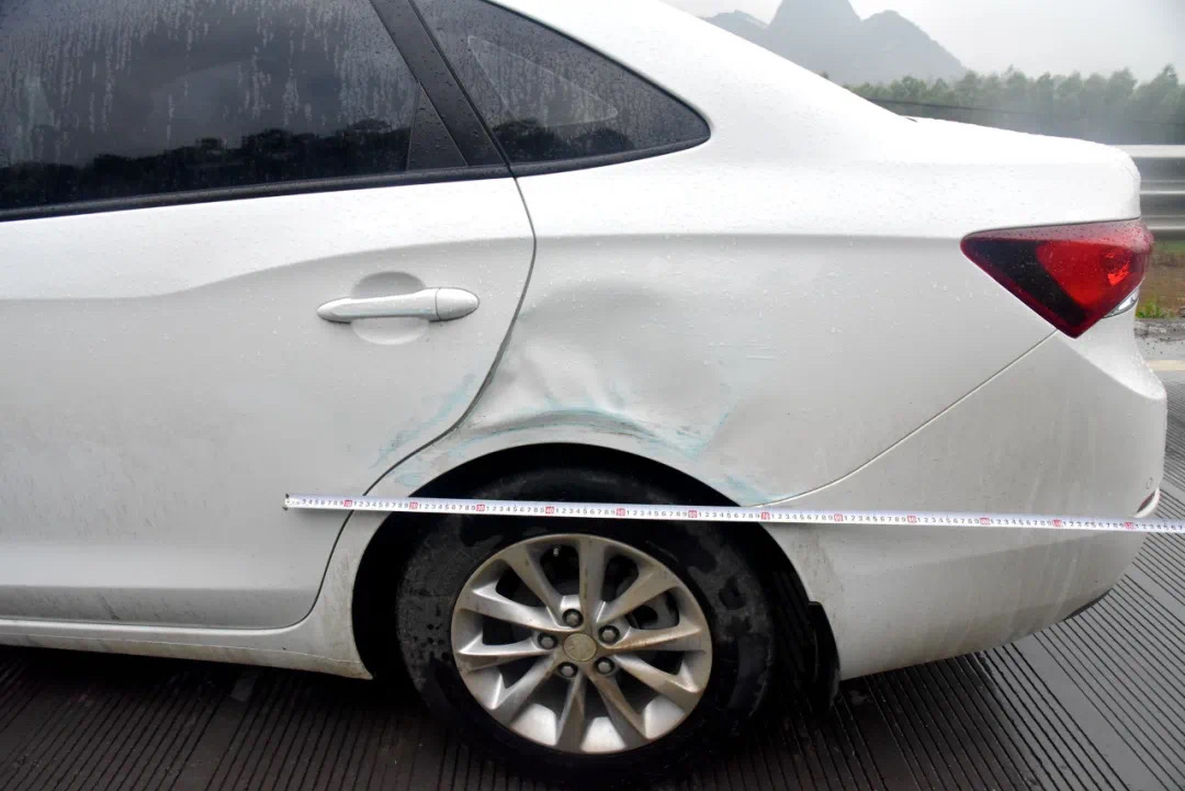 对向的小轿车也未能幸免,被甩尾的大客车刮伤。