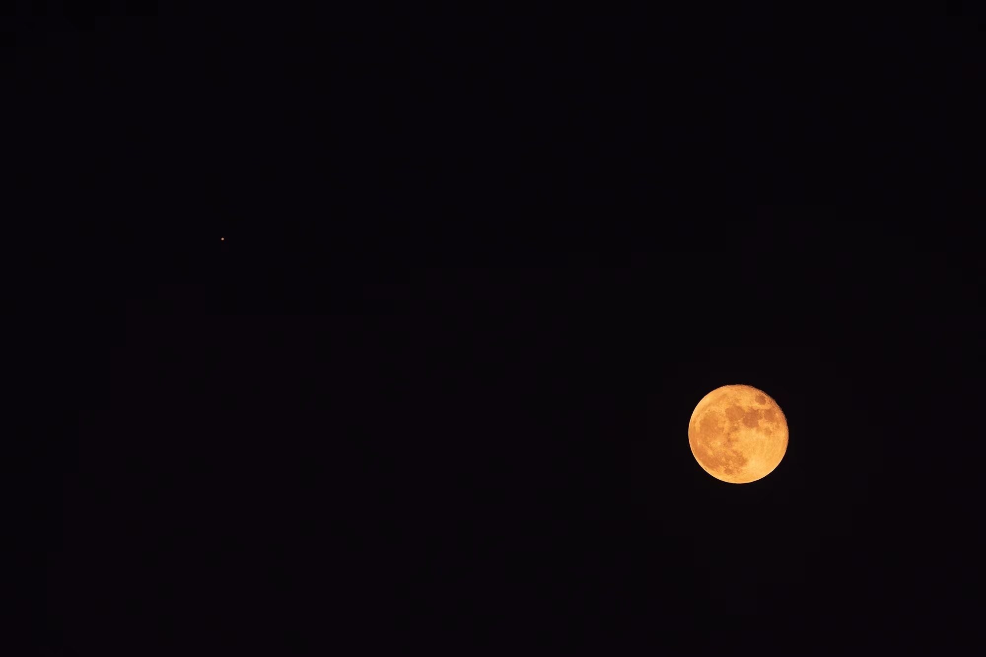 9月11日晚, 夜空中最明亮的两个天体:月球和木星相聚在了一起,即将冲日的木星与接近满月的月亮惊艳同框,上演“木星伴月”的天象。