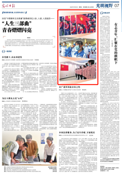 今天(5月20日),《光明日报》刊发【展现青春风貌,关注青年成长③】