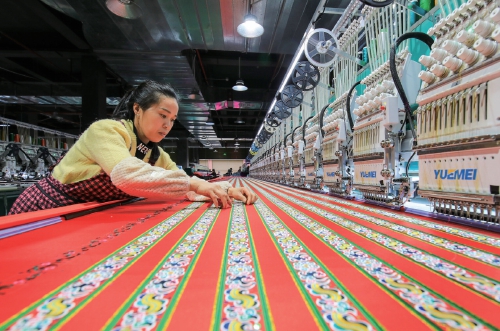 近日,在贵州省从江县美娥易地搬迁安置点一家民族刺绣生产车间内,一位女工在绣花机前作业。近年来,从江县依托当地少数民族服饰传统技艺,持续加大对民族刺绣产业的扶持力度,引进电脑绣花机等设备发展民族刺绣就业帮扶车间,拓宽了搬迁妇女群众的就业渠道,实现顾家增收两不误。