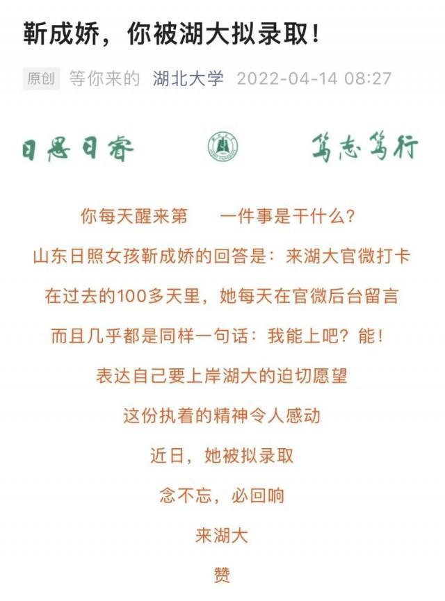 学校官微团队也很快注意到这个每天来留言的铁粉,真诚鼓励她。