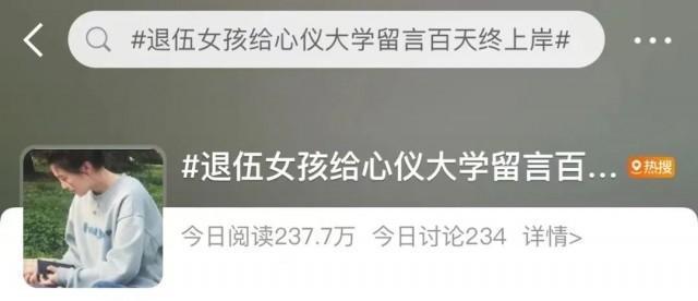 话题#退伍女孩给心仪大学留言百天终上岸#