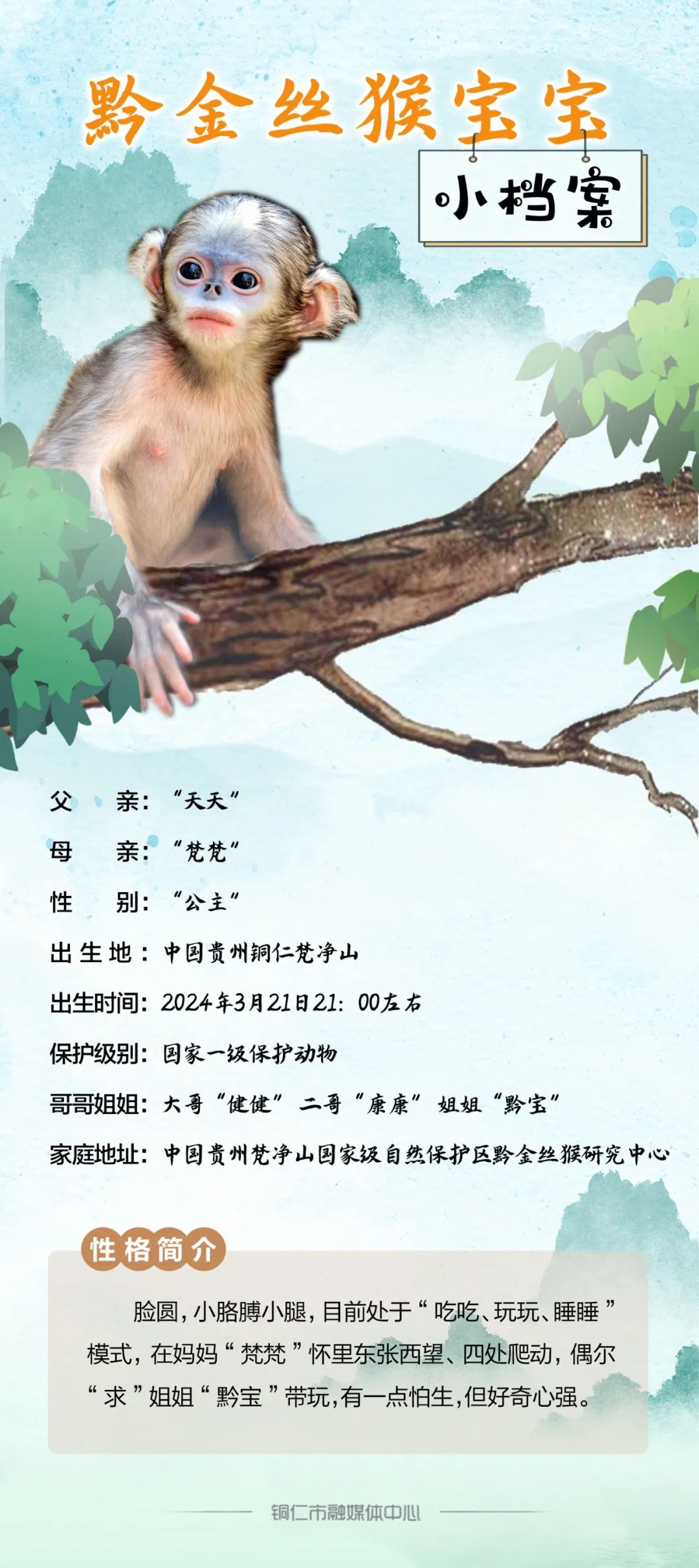 我们将对名字进行初步整理,请贵州梵净山国家级自然保护区管理局野生动物救护中心(黔金丝猴研究中心) 的小伙伴们初选出10个候选名字,进行投票确定最终名字,并于小宝宝满百日之日正式公布。