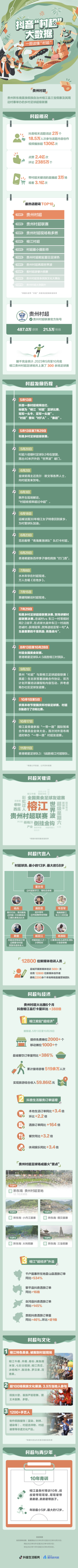 11月15日,抖音生活服务发布《贵州村超大数据》。10月底,贵州“村超”美食联赛收官。数据显示,今年5月至10月,抖音“村超”相关话题播放量超130亿次,18.5万人次参与话题内容创作,榕江县抖音打卡量同比增长388倍。