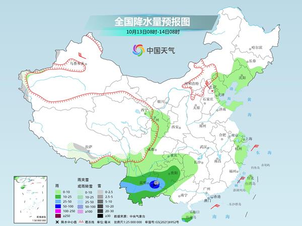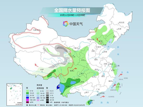 具体来看,中央气象台预计,今天,西藏东部、青海北部和东部、甘肃西部、川西高原西北部等地部分地区有小到中雪或雨夹雪;西藏东南部、四川南部、贵州西部、云南中西部及海南岛中东部等地部分地区有中到大雨,其中,云南西部局地有暴雨(50~60毫米)。