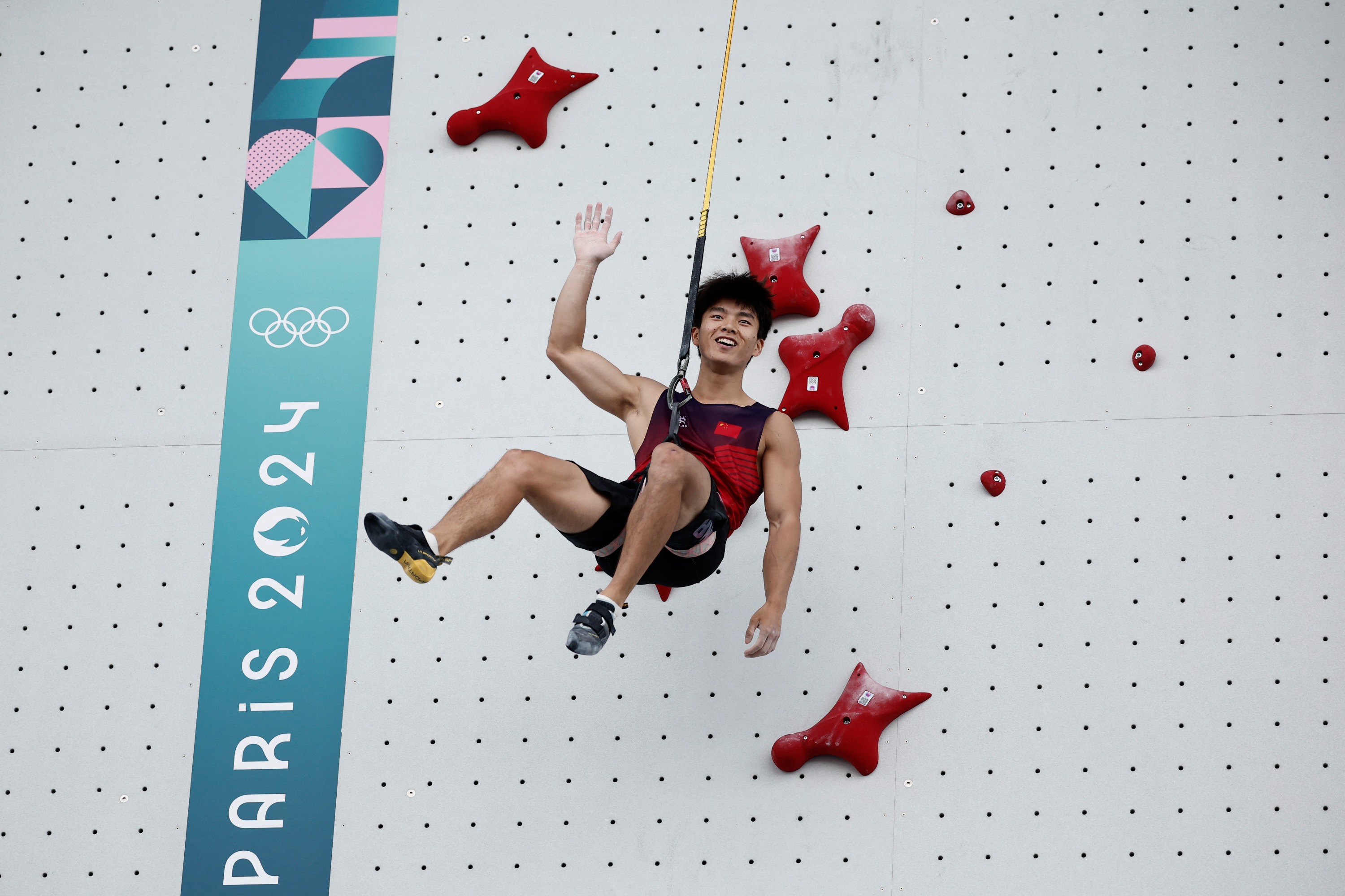 当地时间8月8日,巴黎奥运会攀岩项目男子速度赛,中国队选手伍鹏用时4.77秒登顶,以0.02秒之差获得银牌。