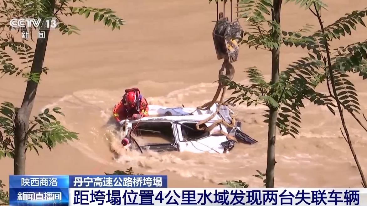 7月19日20时40分许,陕西商洛市柞水县境内一高速公路桥梁因山洪暴发发生垮塌,导致多辆车辆坠河。