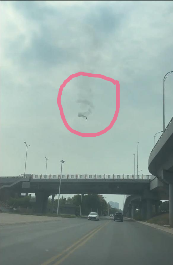 记者查阅该网友视频,发现拍摄的画面中,一架飞行器正在天空中螺旋式下降,并且尾部冒出黑烟。发布视频的网友在评论中表示:“这是特技表演吗?”但仔细翻看该视频可以发现,在视频第13秒时间,能明显看到该飞行器被重新拉升又飞行的动作。