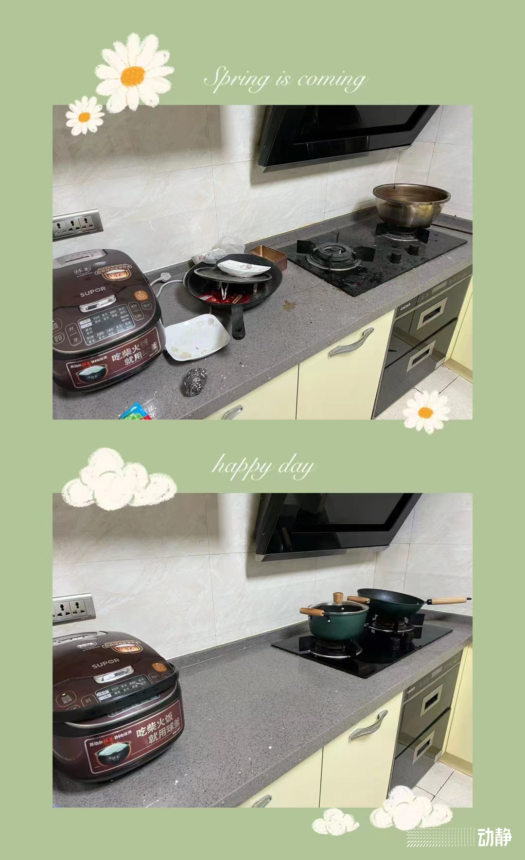 最经典的一位勤快得不是时候,在朋友圈哀叹:“半年没进过的厨房,上个星期也不知道咋回事,特别勤快,把两个冰箱里的僵尸肉、橱柜里所有调味料、干货全丢了,还没来得及重新添置,现在……”