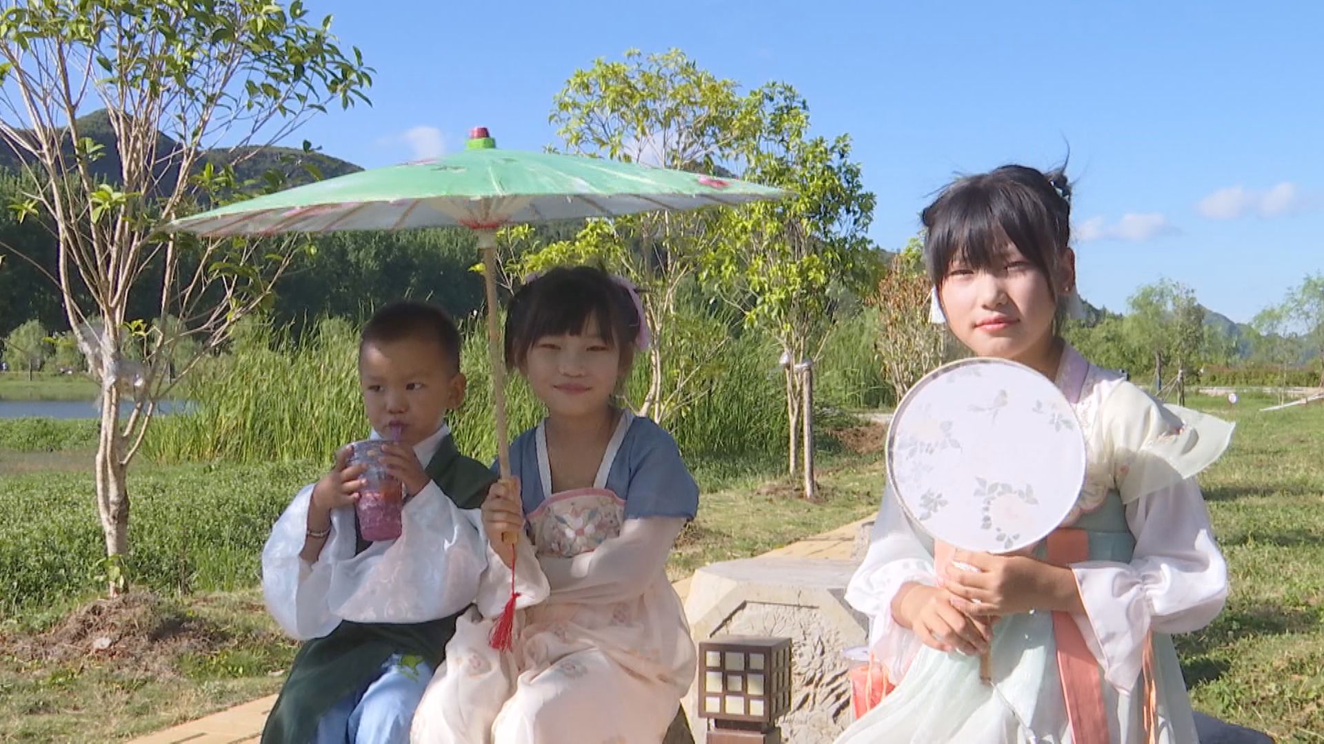 游客付坭霜说:“妈妈带我来这里玩,我穿着汉服很开心,也觉得很漂亮。”