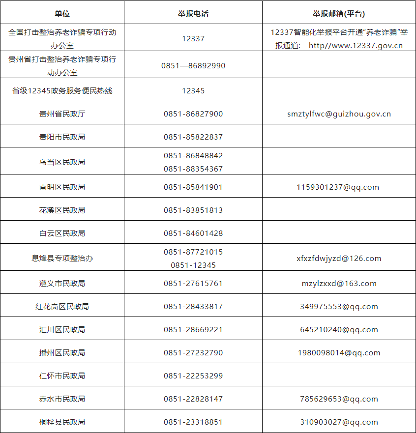 请收藏!贵州打击整治养老诈骗举报方式