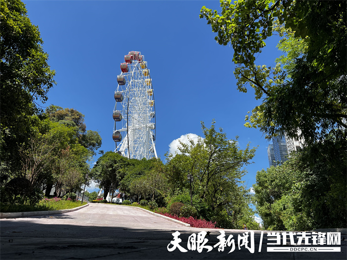 ▲贵阳市河滨公园升级改造后的摩天轮主体结构已基本建设完成。河滨公园管理处工作人员表示,预计摩天轮将于下月开放运营。