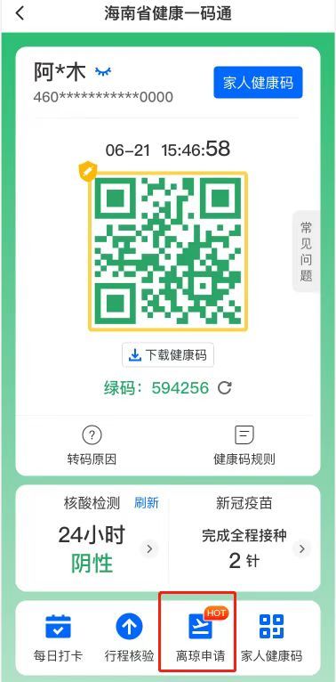 ▲海南于8月10日6:00起开放离岛申请入口,符合条件的滞留旅客可在“海南健康码”上进行离岛申请。