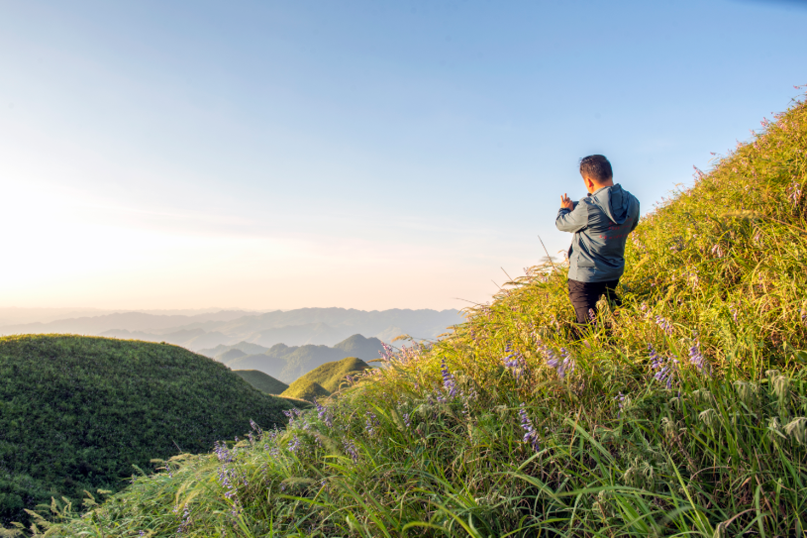 时近黄昏,伫立在这玉簪花栖身的傲世山头,置身于这翠峰如簇的晚籁,看着如血的残阳慢慢地没入地平线,眺望山脚下次第亮起的万家灯火,倏然觉得,有谁还能在这晚霞与山色一体、灯火与星光相融的景致中不会忘情和流连?