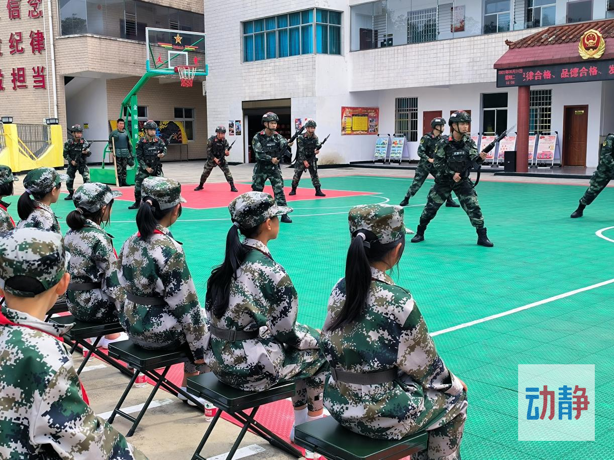 在武警黔西南支队晴隆中队综合训练场上,官兵们正在为晴隆县“八一爱民学校”沙子镇光明小学毕业班的孩子们演练刺杀术、匕首操、格斗术……
