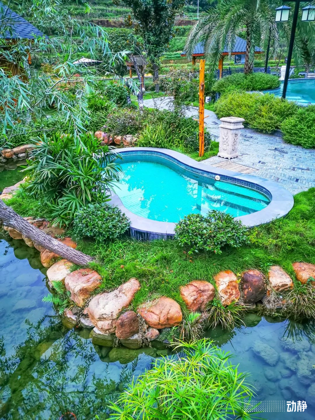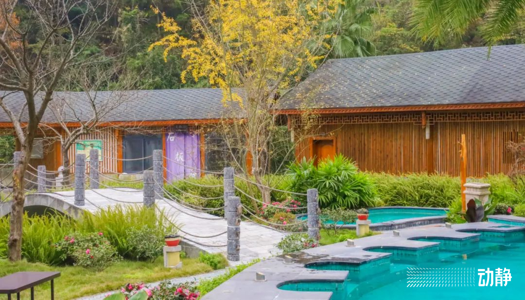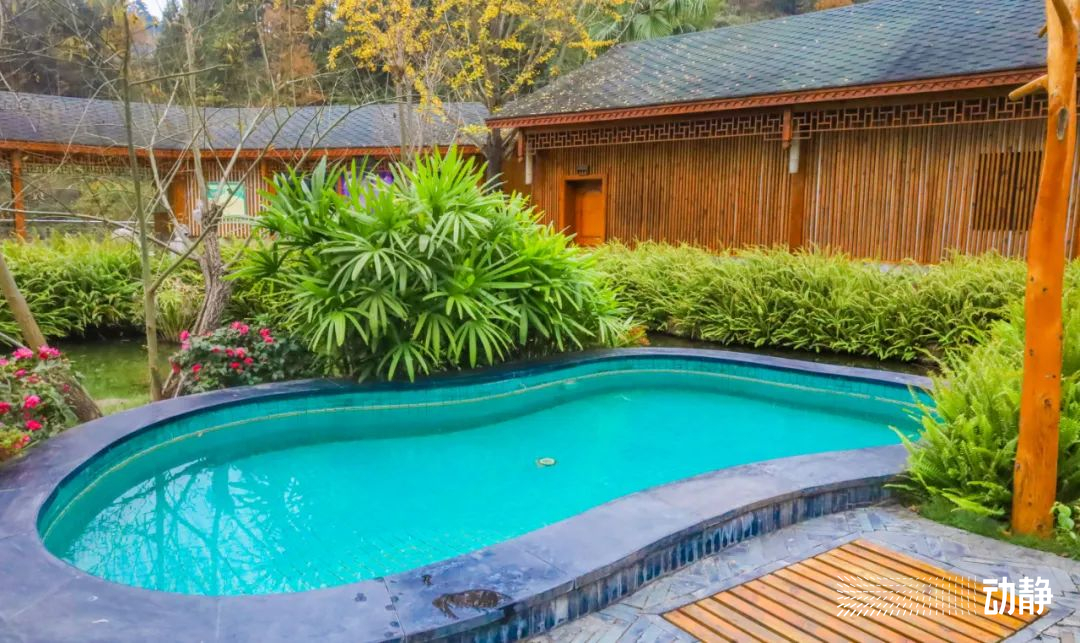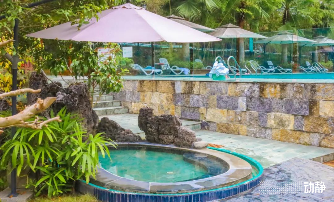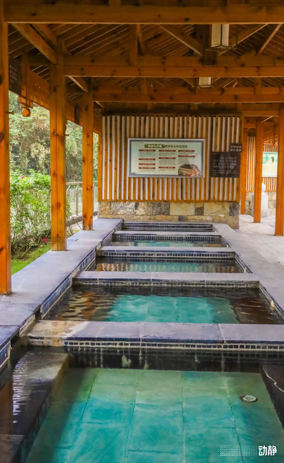 温泉露天浴池依山而建,园内20多个室内室外泡池如花次第展开、星罗棋布,完美的结合了山野自然风光,沐浴其中,尽享自然美景,成为游客养生度假的热门选择。