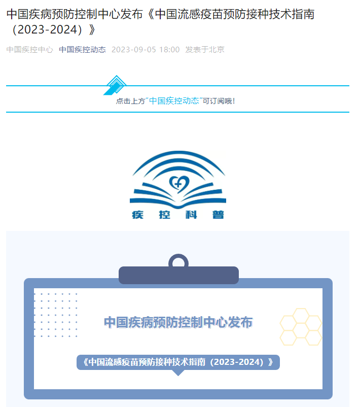 《中国流感疫苗预防接种技术指南(2023-2024)》