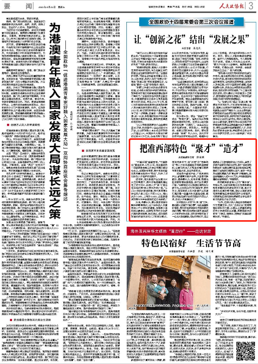 “中国天眼”遥望苍穹,“中国数谷”算启未来。8月23日,在全国政协十四届常委会第三次会议专题分组讨论会上,全国政协常委、贵州省政协副主席冉霞谈起贵州“特色”,打开了讨论科创人才培养的话匣子。