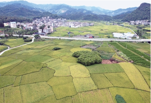 8月29日,位于贵州省黔东南苗族侗族自治州从江县贯洞镇的连片稻田优质水稻成熟泛黄,粮食丰收在望。 梁辉波 摄