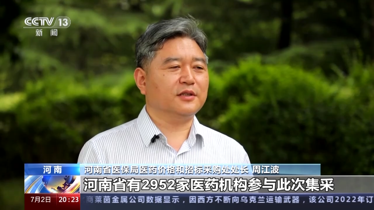 河南省医保局医药价格和招标采购处处长 周江波:河南省有2952家医药机构参与此次集采,我们提前谋划,组织中选企业,配送企业,医疗机构及时签订三方供应协议。目前,中选药品货源充足。特别是对部分特殊的药品,有一家主供企业和两家备供企业,这样就可以更好地满足临床供应。