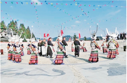 记者看到,南猛村的广场上,十几个苗族小伙子手持芦笙尽情演奏,伴随着悠扬的曲调,四周聚集起来的苗族妇女踏歌而行。芦笙舞又名“踩芦笙”“踩歌堂”,因用芦笙为舞蹈伴奏和自吹自舞而得名,是苗族同胞在年节、集会、庆贺等喜庆时刻表演的传统特色节目。2006年,苗族芦笙舞被列入国家级非物质文化遗产名录。