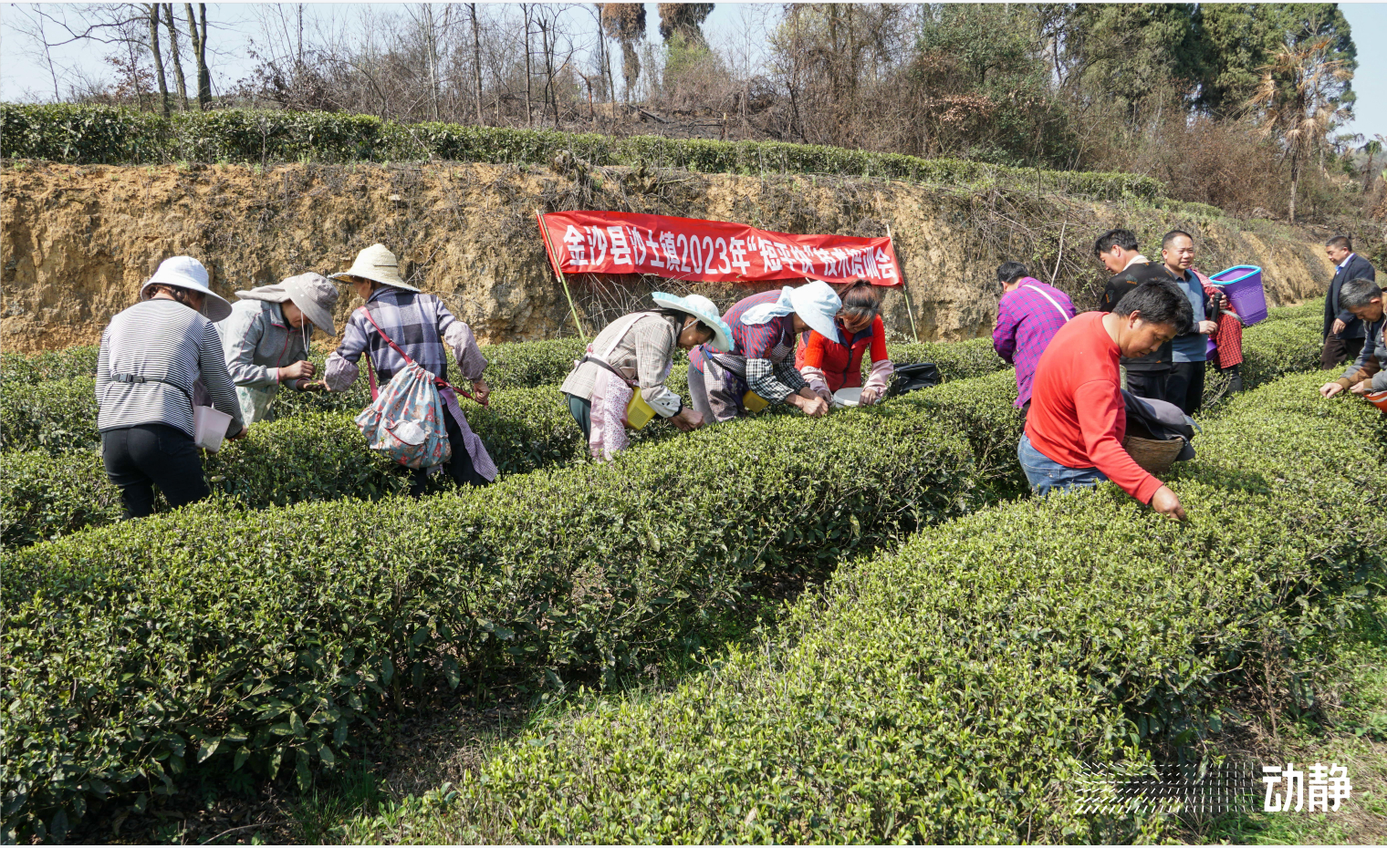在贵州金沙贡茶茶业有限公司沙土镇红旗村沿河茶园种植基地,几十名采茶工人正抓紧时间采摘春茶,他们穿梭其间,手指轻轻掠过枝头,一片片嫩芽就收入篓中,到处可见繁忙的景象和收获的喜悦。为促进采茶工技能的提升,每年一到采春茶的季节,公司与政府部门都要组织开展茶青采摘技术现场培训,还将“双手采茶”技能教会群众,进一步提高了采摘效率,帮助茶企创收的同时,也助力群众增产增收。