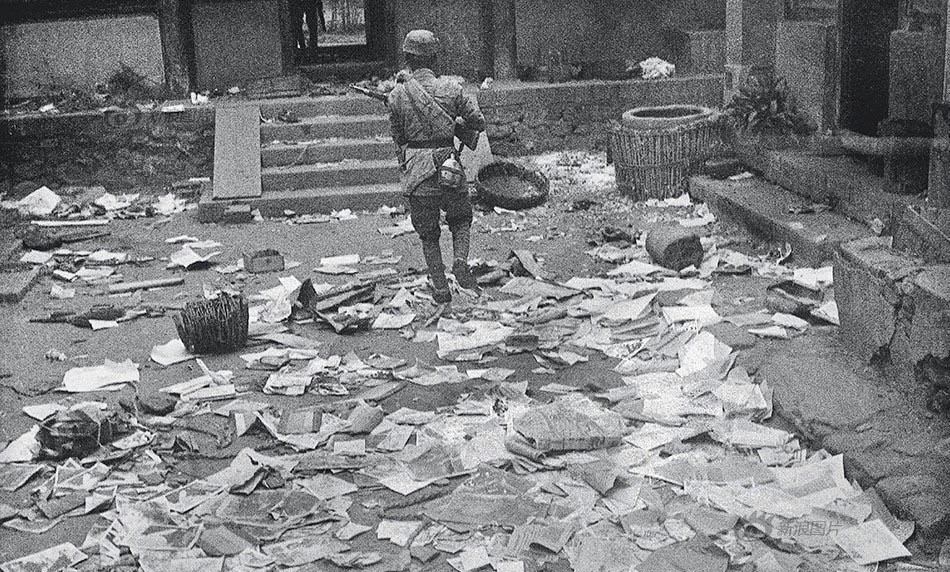 1939年5月,大龙华战斗打响,罗光达随八路军战士一起冲进满地散落文件的敌军司令部院落,拍下《我军搜索日军司令部》,这张照片后来被誉为“八路军敌后抗战最早的一张现场新闻照片”,它生动还原日寇逃窜时的仓皇失措,真实展现了八路军战士的英勇无畏。该照片1942年7月发表于《晋察冀画报》创刊号。